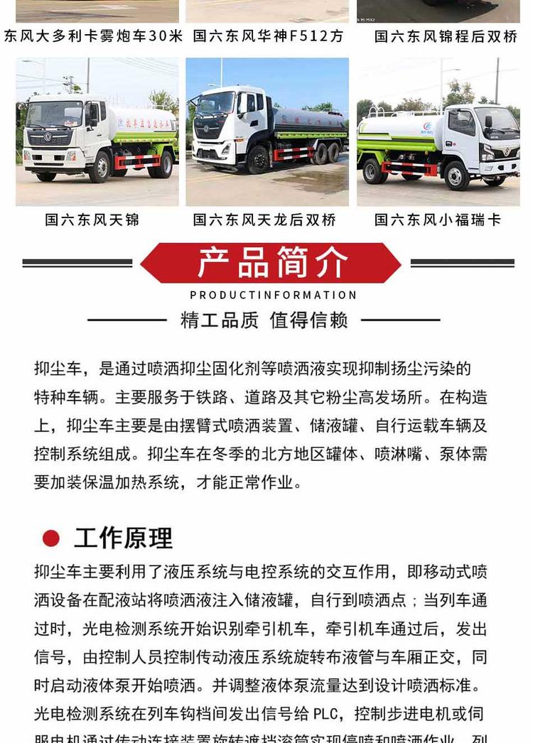 東風(fēng)天津6 12方噴頭頂裝:罐體實(shí)際容積為12方,采用武鋼優(yōu)質(zhì)碳鋼,方圓罐結(jié)構(gòu)。標(biāo)準(zhǔn)配置:前鴨嘴、前沖、后噴、側(cè)噴、后對機(jī)**、大型沖孔平臺(無積水、無腐蝕)、管道加厚、大口徑球閥、氣動閥門**開關(guān)、內(nèi)罐防銹.東風(fēng)天津6 12方噴頭可選配置:霧炮、電子水炮、箭燈。