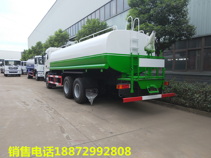 隨底盤選裝駕駛室;選裝側噴及農藥炮;品名:;密度:1000千克/立方米;有效容積:15.6立方米;罐體外形尺寸(×長軸×短軸)(mm):6600×2300×1500;ABS吸程≧7米,灑水寬度≧14-16米,射程25-30米,引水時間<5min,流量60m3/h。前沖()、后灑、帶側噴(花灑)、帶后工作平臺、平臺上安裝綠化灑水高炮(炮噴射形狀可調節:直沖、大雨、中雨、毛毛雨、霧狀、可連續調節,360°旋轉),配消防接口,自流閥,濾網,帶自吸自排功能配備大功率專用灑水泵,泵可自吸自排,安裝過濾網,帶消防接口,可通過消防栓進水,帶自流閥,隨車選裝20米綠化卷盤,可噴灑農藥,罐體金屬漆。罐體有橢圓和方圓罐兩種,可根據用戶的要求定做。