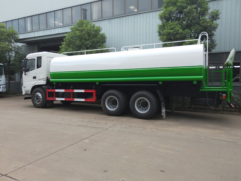 20噸灑水車,吸程≧7米,灑水寬度≧14-16米,射程≧25-30米,引水時間<5min,流量60m3/h。前沖(噴)、后灑、帶側噴(花灑)、帶后工作平臺、平臺上安裝綠化灑水高炮(炮噴射形狀可調節:直沖、大雨、中雨、毛毛雨、霧狀、可連續調節,360°旋轉),配消防接口,自流閥,濾網,帶自吸自排功能。配備大功率專用灑水泵,泵可自吸自排,安裝過濾網,帶消防接口,可通過消防栓進水,帶自流閥,隨車選裝20米綠化卷盤,可噴灑農藥,罐體金屬漆。罐體有橢圓和方圓罐兩種,可根據用戶的要求定做。