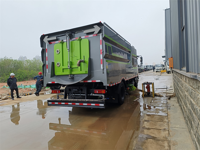 該掃路車采用東風(fēng)天錦型二類底盤改裝,加裝副發(fā)動(dòng)機(jī)、風(fēng)機(jī)、清水箱、垃圾箱、左右立掃、后置吸盤,掃盤降塵系統(tǒng),液壓系統(tǒng)、裝置電控系統(tǒng)和副車架等改裝而成(可加裝前沖后灑,可以根據(jù)客戶要求做成方形、圓形箱體。)