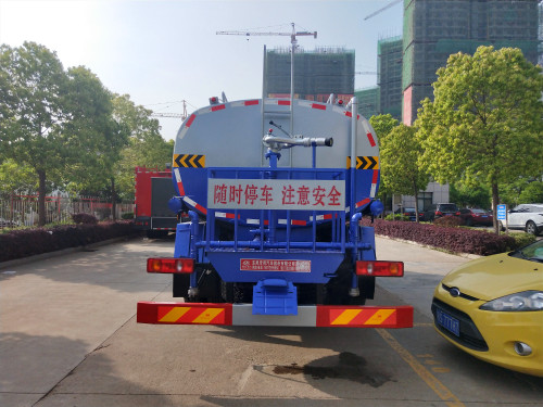 上裝配置:罐體容積為8-10立方灑水車,罐體鋼板為4mm碳鋼Q235材質(zhì),罐內(nèi)隔板具有防波作用,以減輕汽車行駛時(shí)罐體液體沖擊,罐體及整車外形尺寸按照公告。帶大功率專用灑水泵,泵可自吸自排,整車前沖、后灑、側(cè)噴、帶65消防接口,后平臺帶綠化灑水炮,灑水炮可全方位旋轉(zhuǎn),可連續(xù)調(diào)成直沖狀、大雨、小雨、毛毛雨;前封頭帶水位計(jì),后平臺主管路帶1寸澆花接口,后爬梯。平臺后部帶小安全告知牌:“隨時(shí)停車,注意安全”,帶兩根水管及陰陽端。罐體顏色:上白/下藍(lán),銀灰/銀藍(lán),罐體兩側(cè)噴“灑水車、綠化噴灑車”字樣,貼反光標(biāo)示。灑水車可加裝前沖后灑氣動閥駕駛室控制、可加裝霧炮機(jī)組發(fā)電機(jī)組噴霧降塵裝置、車頭可加裝推雪雪鏟、雪滾裝置街道、公路除雪等。