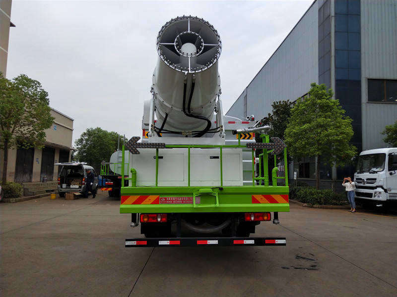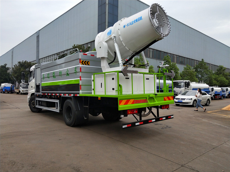 罐體采用機(jī)器壓板一次性成型技術(shù),采用先進(jìn)旋邊機(jī),罐體包罐機(jī)工藝保證了罐體制作的精度和美觀。全國(guó)獨(dú)有烤漆工藝,防腐除銹,多層底漆、面漆噴涂。功能齊全,灌溉、噴灑、道路養(yǎng)護(hù),噴霧降塵、高炮噴射等,采用優(yōu)質(zhì)水泵,合理設(shè)計(jì)水路管道,氣控取力器,作業(yè)能力強(qiáng);加大罐體設(shè)計(jì),可以裝作14-18方水,內(nèi)設(shè)6道防蕩板,提高了車(chē)輛的使用效率。 霧炮*大噴灑距離可達(dá)100-120米。
