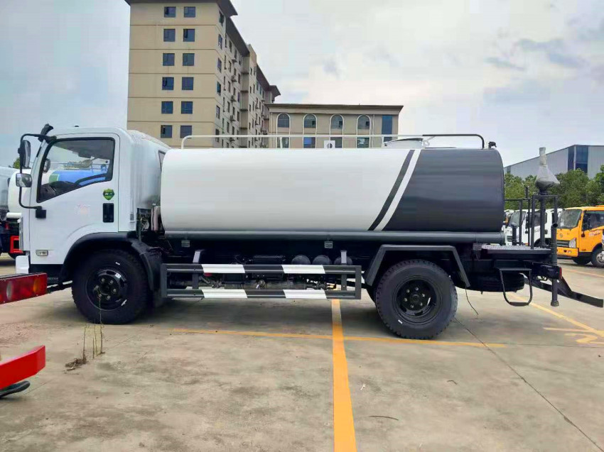 上裝配置:罐體用4MM碳鋼板制作,罐內隔板具有防波作用,以減低汽車行駛時罐體液體的沖擊。整車帶一個專用灑水泵(垂直吸程6米),灑水寬度14米,射程28米。多功能灑水車配備2個前沖(噴)(能將路面泥巴、塵土、垃圾沖干凈);2個后灑(能均勻地將水灑在路面,一次灑水寬度14米)、2個側噴(花灑)(能均勻地將路旁綠化帶澆灌)、帶1個后工作平臺,平臺上安裝1個綠化灑水高炮(灑水炮可全方位旋轉,可連續調成直沖狀、大雨、小雨、毛毛雨,霧狀可調節沖洗高大樹木),引水時間<5min,流量90m3/h。帶1個消防接頭,帶1個自流閥,1個過濾裝置、人性化爬梯及側防護欄,安裝灑水音樂喇叭。