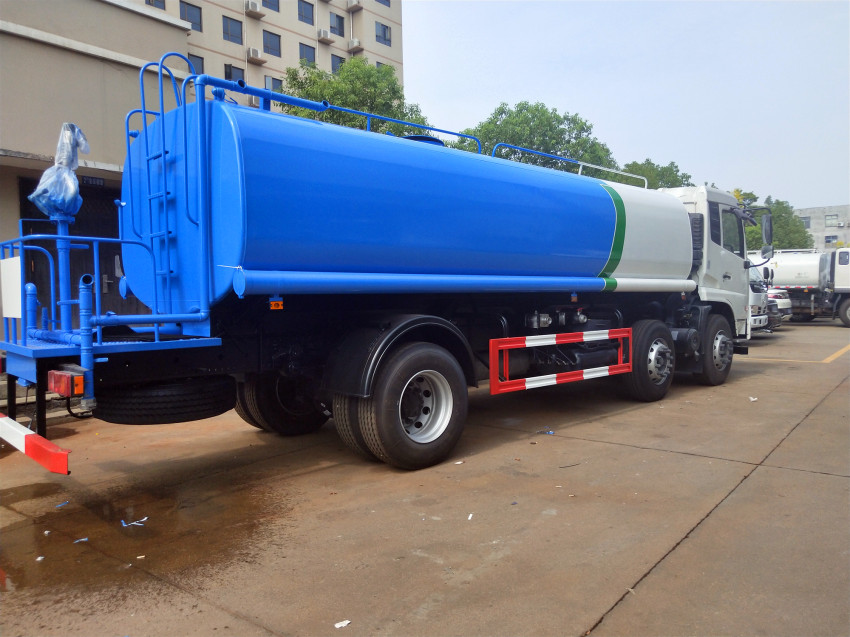 上裝參數(shù):罐體有效容積21.1立方,罐體采用武鋼的優(yōu)質(zhì)Q235碳鋼一次性錘煉成型技術(shù)制作,厚度4mm。并采用了全國獨(dú)有烤漆工藝,防腐除銹,多層底漆、面漆噴涂。罐體尾部加裝了灑水作業(yè)平臺,平臺上安裝多個(gè)出水口,能讓用戶最大程度上利用灑水功能