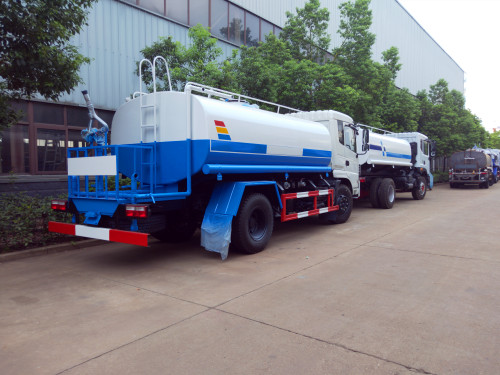 東風12噸灑水車罐體有效容積11.1立方米.罐體外形尺寸(長×寬×高) (mm): 4350×2460×1550; 4000×2460×1550。隨底盤選裝駕駛室,罐體顏色可變化,文字噴涂位置可變化。側防護和后防護均用螺栓連接,防護材料:Q235B, 后部防護裝置的主要尺寸參數(寬×高):130×50(mm),離地高度:500(mm). ABS型號為3631010-C2000,生產廠家為東科克諾爾商用車制動系統(十堰)公司.僅采用10.00R20 18PR,10.00-20 18PR輪胎.選裝外觀樣式。