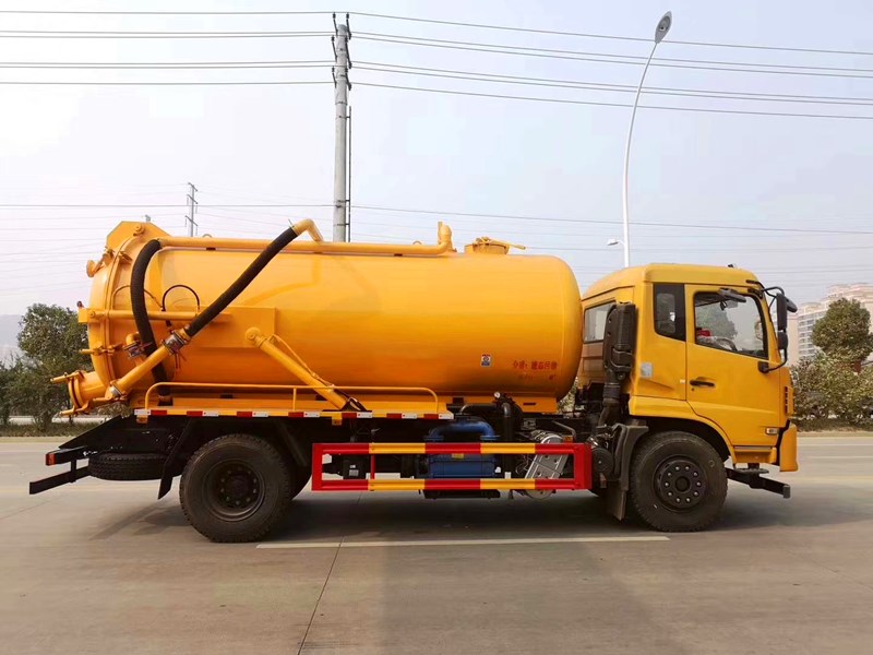 東風多利卡(國5)專用吸污車 主要由取力器、傳動軸、真空吸污泵、壓力罐體、液壓部分,管網(wǎng)系統(tǒng)、真空壓力表、視糞窗、洗手裝置等組成,隨車配置大功率真空吸污泵和優(yōu)質(zhì)液壓系統(tǒng),罐體封頭一次壓鑄成型、罐體可后開、雙頂自卸。罐內(nèi)污物可通過后蓋直接傾倒,具有真空度高(比吸糞車的吸力更大)、噸位大、效率高、用途更廣泛的特點。