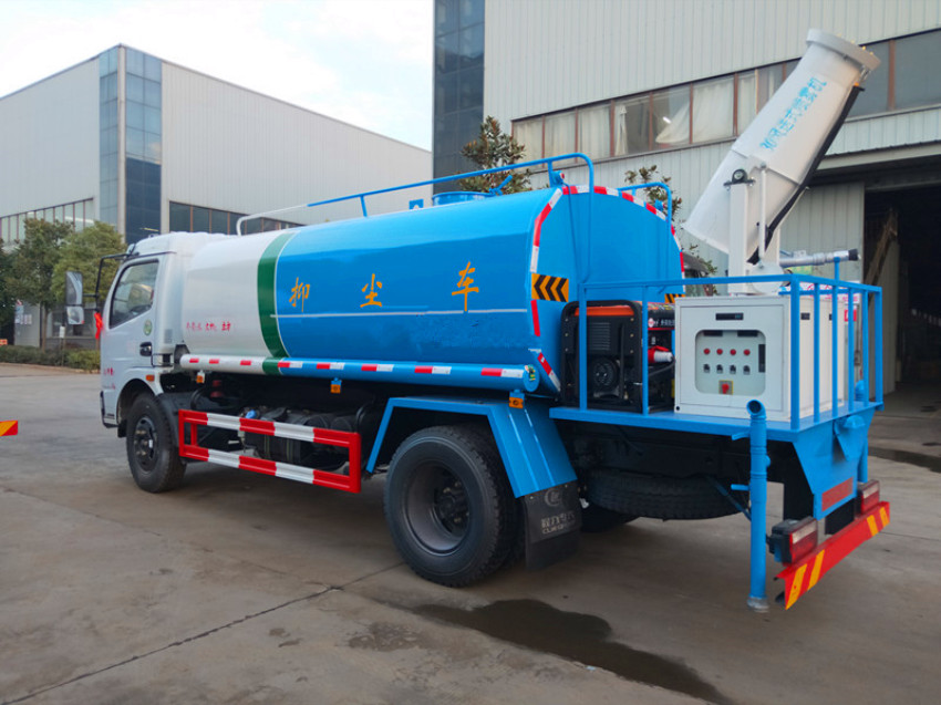 功能說明:灑水車前裝有鴨形噴嘴或圓頭沖嘴,后面裝有圓柱開灑水噴嘴或蓮蓬頭噴嘴,后部有一工作平臺,裝配大功率灑水炮。帶消防接頭,帶自流閥,帶自吸功能,選配20米綠化消防卷盤(選裝)。