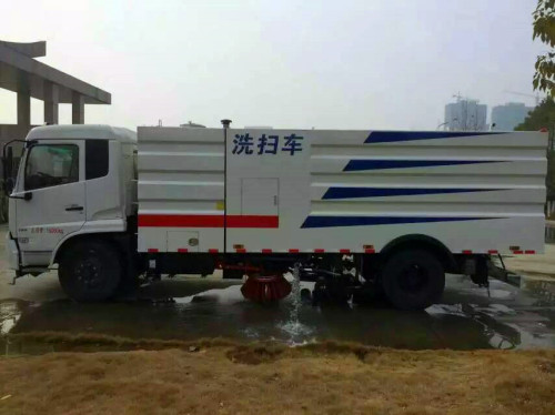1、采用吸掃結合的方式收集垃圾,濕式除塵、電液控制,液壓傾翻卸料的作業方式對路面進行清掃作業。