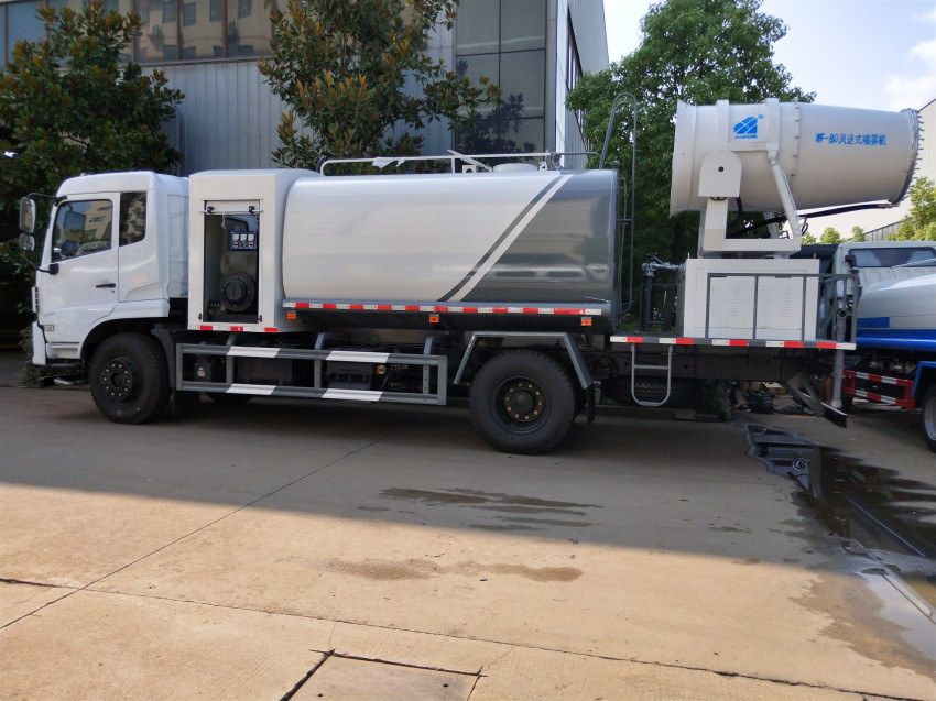霧炮車是防污降塵的一種先進設(shè)備,可將灌裝水以高壓驅(qū)動形成強大噴霧,噴灑至空中,風(fēng)炮射程達(dá)到100米,噴霧流量可達(dá)80L/min,噴灑范圍廣,凈化空氣能力強,具有強大的噴灑功效,且具有前沖、后灑,左右噴灑等多種功能抑塵和清潔空氣的車輛
