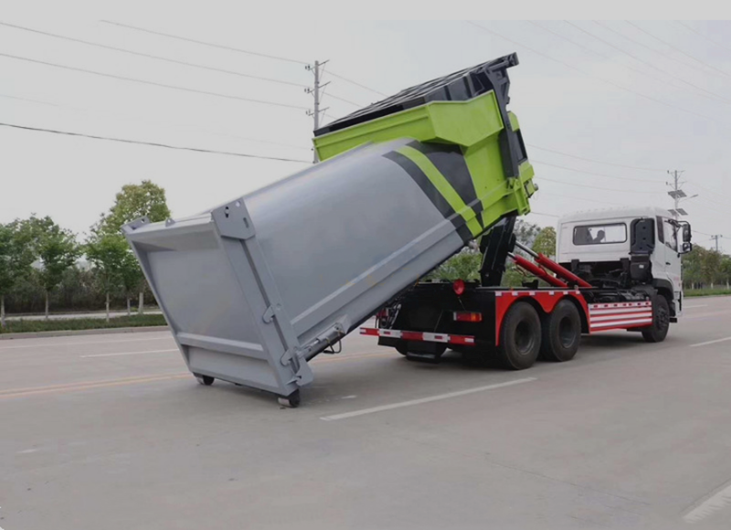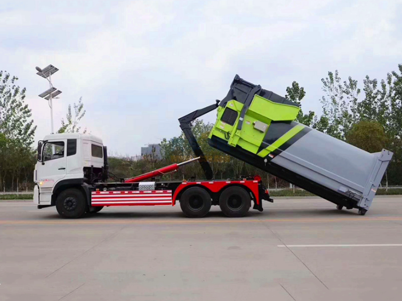 東風雙龍后雙橋勾臂垃圾車配18方移動壓縮垃圾箱,是我公司根據市場及客戶的需求開發的一種環衛專用車輛,專門用于運轉鄉村城鎮中的生活垃圾。整車性能穩定可靠,垃圾廂鉤裝、鉤卸操作安全省力,自卸垃圾輕便快捷,整車所配廂密封性好,完全符合城市環保要求。該車采用原裝底盤改裝,配置電控操作系統和手動操作桿兩種,通過液壓系統將垃圾廂勾起,卸下。上裝部分由缸、附車架、翻轉架、支撐腿(選裝)、鎖緊架、鎖緊油缸及多路換向閥等組成。一車可配備多個垃圾箱,實現與多個地點的垃圾斗聯合作業;垃圾箱材質分不銹鋼和碳鋼,外形為方形或圓弧形(一次冷壓成型),廂體為密封可壓縮式,兩側設計有垃圾裝入料口,后蓋為可向上打開的活動門,并用4個鎖栓鎖緊(防止 在垃圾運輸過程中垃圾廂內的垃圾撒在路面上造成二次污染)開鎖緊栓可將廂內垃圾一次性自卸出來,完全液壓操作,上下一次工作循環時間≤50秒。