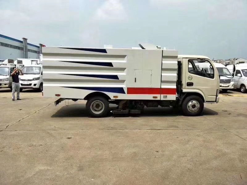 操縱箱在駕駛室,各系統(tǒng)電氣集中控制,操作方便。外觀造型電腦設計,高位側裙,曲面過渡,整體協(xié)調勻稱;本車由底盤,副發(fā)動機,風機,電磁控制閥,垃圾箱,水箱,吸盤,掃把,噴水系統(tǒng),液壓系統(tǒng),電控系統(tǒng)等組成。