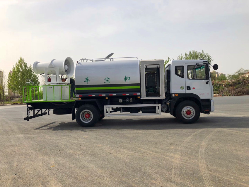 多功能抑塵車后面的霧炮屬于純電動的,包括霧炮上下升降都是由電來驅動的,霧炮的用電問題不用擔心,上方的抑塵車圖片上可以看見駕駛室后方一個卷簾門,卷簾門里面就是發電機組,霧炮的所有用電的功能,全部由發電機組來供應電。