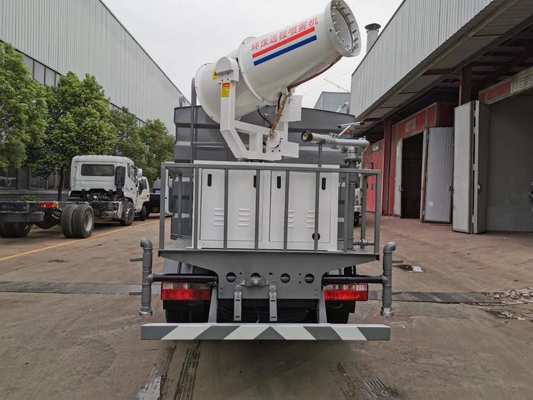 抑塵車吸程≧7米,灑水寬度≧14-16米,射程≧25-40米,引水時(shí)間<5min,流量60m3/h。前沖(噴)、后灑、帶側(cè)噴(花灑)、帶后工作平臺(tái)、平臺(tái)上安裝綠化灑水高炮(炮噴射形狀可調(diào)節(jié):直沖、大雨、中雨、毛毛雨、霧狀、可連續(xù)調(diào)節(jié),360°旋轉(zhuǎn)),配消防接口,自流閥,濾網(wǎng),帶自吸自排功能。配備大功率專用灑水泵,泵可自吸自排,安裝過濾網(wǎng),帶消防接口,可通過消防栓進(jìn)水,帶自流閥,此車尾部加裝大功率農(nóng)藥噴灑炮,噴灑狀態(tài)霧狀,有效射程15-45米,外部平臺(tái)帶獨(dú)立的機(jī)組。
