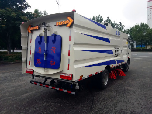 東風大多利卡掃路車(2.5水/5塵)掃路車清掃方式:四掃盤與吸盤進行吸掃結合,吸掃能力卓越;兩側掃把可同時工作,也可單側獨立工作。清掃裝置機構簡潔可靠,帶避讓防撞功能。