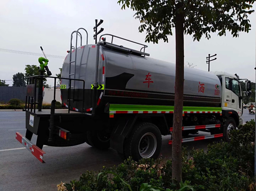 福田瑞沃12噸灑水車罐體采用機器壓板一次性成型技術,優質武鋼材質,配置大容量水箱,水罐采用有限元分析優化設計,儲水量更大,延長作業時間;配置獨立的高、低兩套水路系統,高低壓水泵選用國際知名品牌;采用自吸式級雙級離心泵,效率高,水源不方便時,可從河道、湖泊中吸水。全國獨有烤漆工藝,防腐除銹,多層底漆、面漆噴涂。 功能齊全,灌溉、噴灑、道路養護,噴霧降塵、高炮噴射等,采用優質水泵,合理設計水路管道,氣控取力器,作業能力強;加大罐體設計,可以裝作12方水,提高了車輛的使用效率。