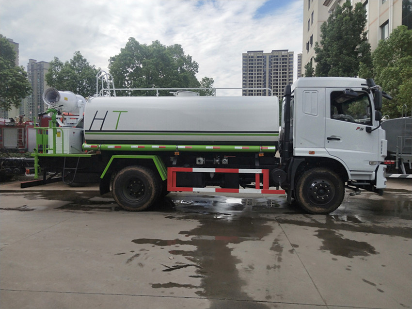 專用部分:帶前沖、后灑、側噴、后工作平臺、尾部帶綠化炮,帶自吸自排灑水泵,后工作平臺高壓水炮直沖射程25-30米(可調成:直沖狀、大雨、中雨、小雨、毛毛雨),整車帶消防接頭、自流閥。附送2根水管。加裝30型霧炮,帶8千瓦柴油發電機組,霧炮可以遙控操作