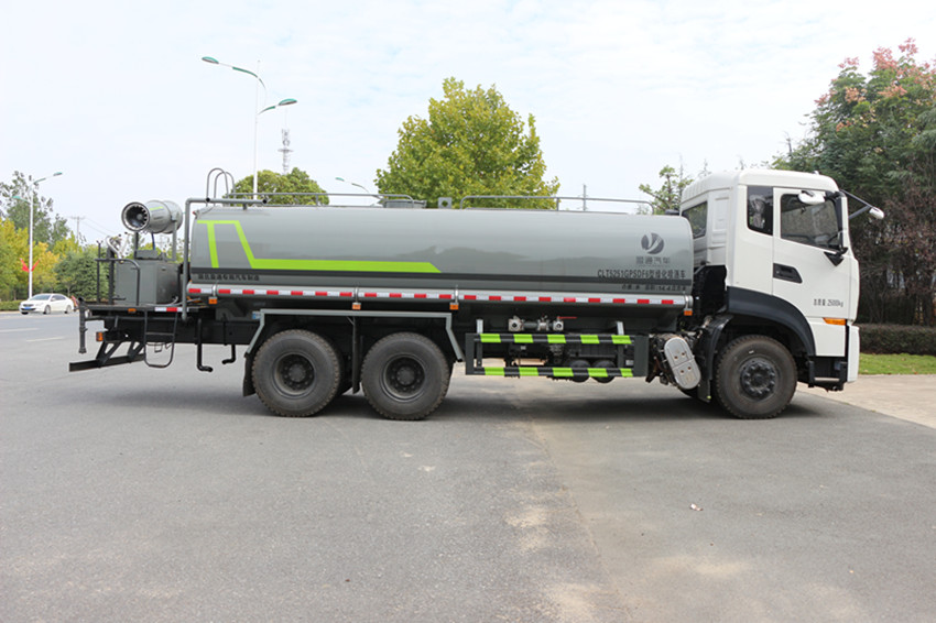 國六東風天龍18方灑水車專用配置:罐體容積 18.7立方,罐體采用國標Q235碳鋼材質,罐體厚度4MM,前后封頭5MM加厚型,罐體內雙層隔板具有防波蕩作用,以減輕汽車行駛時罐內液體沖擊;灑水車整車及外形尺寸嚴格按照國家機動車公告制作而成;裝配大功率專用灑水泵,前沖、后灑、側噴、后平臺帶綠化灑水炮,灑水炮可全方位旋轉,可連續調成直沖狀、大雨、小雨、毛毛雨;配消防接口,自流閥,濾網,帶自吸自排功能。前封頭帶水位計,后平臺主管路帶1寸澆花接口,后爬梯,帶1個消防接頭,帶1個自流閥,1個過濾裝置,其余標配。1、可選裝后平臺帶霧炮機組用于噴霧降塵、農藥噴灑作業;2、可選裝前置電子灑水炮駕駛室操作;3、可選裝氣動球閥駕駛室操作。