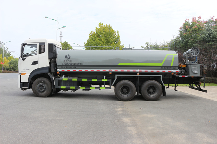 東風天龍KL后雙橋國六灑水車,該車的改裝部分,設計上突出了多功能和人性化理念,基本做到了一車多用,功能齊全,美觀大方;在制作上選用的配套件都是國內同行業中的優質產品,對制作工藝進行嚴格把關;在安全性能上,該車在試制和檢驗階段對環保、燈光、制動、組合分配,側防護等項都進行了嚴格的檢測,并進行了49項技術參數、5千公里路試檢測。