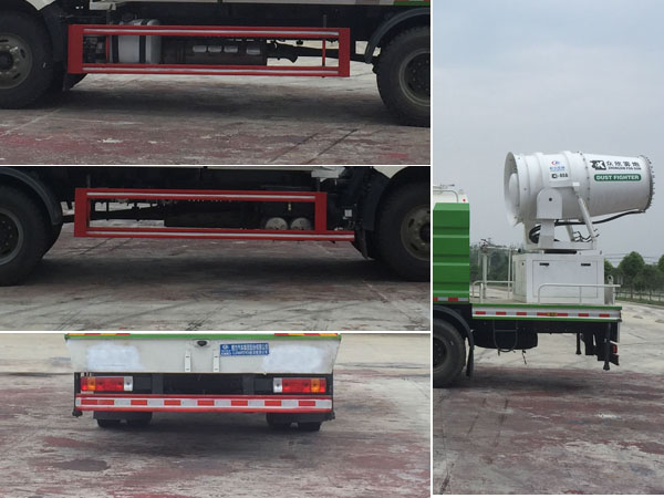 解放霧炮車裝置為抑塵霧炮,用于城市抑塵.整車長/軸距/后伸對應關系為(mm):11020/4300.