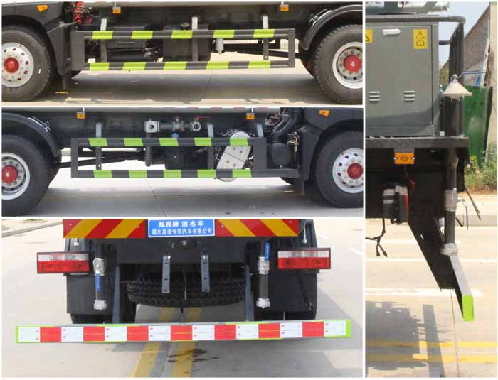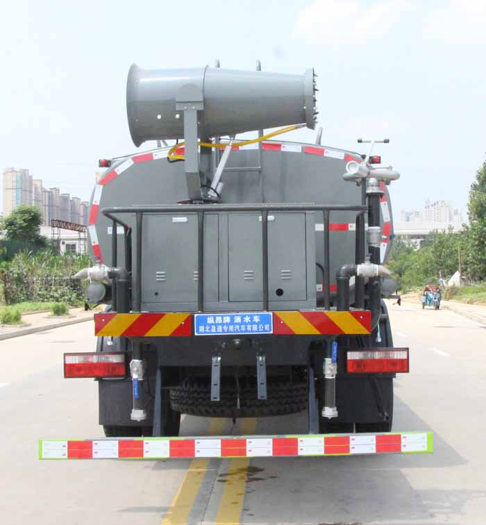 東風(fēng)15噸灑水車產(chǎn)品標(biāo)配前噴(鴨嘴)、后沖、后灑、側(cè)噴、后置式工作 平臺(tái),平臺(tái)上配置綠化水炮(可 360°旋轉(zhuǎn),既可以調(diào)成柱狀,也可 以調(diào)成霧狀,更可以調(diào)成直沖狀、大雨、中雨、小雨、毛毛雨),配 備優(yōu)質(zhì)大功率專用灑水泵(可自吸自排,可從河里或池塘抽水到罐體), 取力器,雜物過(guò)濾網(wǎng),消防接口,自流球閥系統(tǒng)、取力器、球閥、濾網(wǎng) 均為國(guó)家標(biāo)準(zhǔn)產(chǎn)品