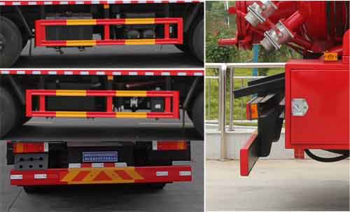 備注 | 選裝罐體側面樣式;ABS型號:3631010-C2000;ABS生產企業:東科克諾爾商用車制動系統(十堰)有限公司;選裝描述:隨底盤選裝駕駛室,選裝罐體后部樣式;側后防護情況:側、后防護材料均為Q235碳鋼,連接方式:螺栓連接。后防護截面尺寸(mm)200×60,下邊緣離地高480mm;污水罐總容量14.6立方米,污水罐有效容積13.9立方米,介質:液態污物,密度:800千克/立方米;清水罐總容量11.68立方米,清水罐有效容積11.12立方米,介質:水,密度:1000千克/立方米,罐體尺寸為(直段長×直徑)(mm):7100×2350(前部3150mm為清水罐,后部3950mm為污水罐);專用功能及裝置:該車用于清洗吸污,主要專用裝置為罐體及清洗吸污裝置;其他說明:兩罐獨立,且不能同時滿載,清洗功能時用清水罐,吸污功能時用污水罐,卸料方式:舉升后卸;選裝前部不帶卷簾門保護箱。,隨底盤選裝儲氣筒、蓄電池位置。 | ||