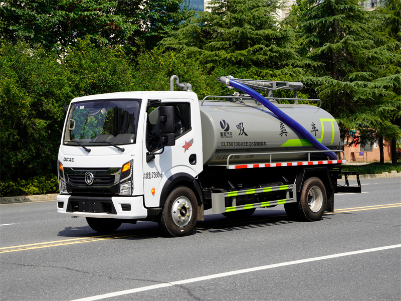 吸糞車,主要應用到化糞池,污水溝和下水道等環境下清理清潔工作的專用車 輛,與灑水車,垃圾車,并稱為三大環衛車型。罐體頂部開設有空氣孔,吸排孔。空 氣孔與水氣分離器相通是空氣出入罐體的通道。入孔平時密封著維修時可以打開,吸 排孔上連吸糞膠管下連虹吸道糞液出入罐體的通道。 罐體兩側中部設有走臺箱,平時用于擱置吸糞膠管,維修時站立。前封頭設有觀 察量管,便于監視裝載量,防止超載。底部設有清洗孔,平時密封著,清洗罐體時, 可打開清洗孔蓋,讓污水自流排出。 由于吸糞膠管始終浸沒于液面上,罐體內的空氣被抽吸后,因其得不到補充而 越來越稀薄,致使罐內壓力低于大氣壓力,糞液即在大氣壓力的作用下,經吸糞膠管 吸入罐體。