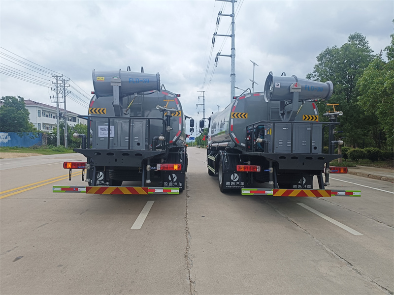罐體約為 15 方、邊燈帶電,罐體尾部上方標配 2 個紅色示寬燈 、前噴為鴨嘴直沖,標配后對沖,用戶可根據自己的需求,來調整對沖位置 、沖孔平臺(承載能力加強),炮筒后蓋為定制型螺栓卡扣 、前噴、后對沖、后灑球閥均采用 50 大通徑不銹鋼球閥 、新式軸承式水炮,更加耐用。配 60-90 型水泵 、側噴和高炮管道加粗并配 65 大通徑不銹鋼球閥,壓力更大 、防腐法蘭墊片 、鋁制后灑,不易炸開 、罐體自動焊(美國林肯焊機及電源),拼板自動焊接封頭環縫焊接,無氣 孔焊縫美觀 、爬梯、側護網、后保險杠均為螺栓連接方便拆卸維修 、塑料擋泥板替代鐵擋泥板更加輕便,用螺栓連接方便拆卸 、前部、后部主管連接處為 6 孔圓法蘭連接不易沖墊