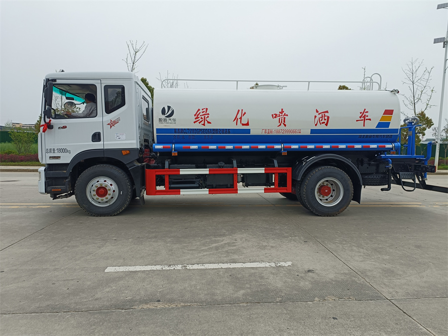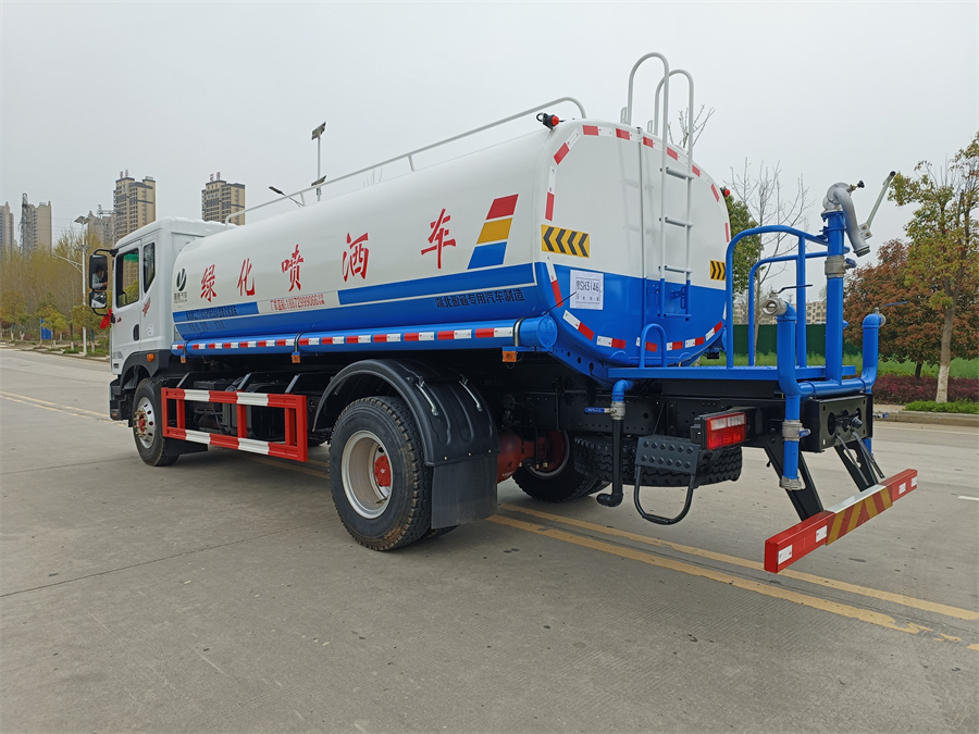 灑水車(chē)產(chǎn)品標(biāo)配前噴(鴨嘴)、后沖、后灑、側(cè)噴、后置式工作 平臺(tái),平臺(tái)上配置綠化水炮(可 360°旋轉(zhuǎn),既可以調(diào)成柱狀,也可 以調(diào)成霧狀,更可以調(diào)成直沖狀、大雨、中雨、小雨、毛毛雨),配 備優(yōu)質(zhì)大功率專(zhuān)用灑水泵(可自吸自排,可從河里或池塘抽水到罐體), 取力器,雜物過(guò)濾網(wǎng),消防接口,自流球閥系統(tǒng)、取力器、球閥、濾網(wǎng) 均為國(guó)家標(biāo)準(zhǔn)產(chǎn)品,主管道加粗,法蘭墊、法蘭盤(pán)加厚,大通徑球閥。 整體具備性能優(yōu)良安全可靠、效率高、流量大、維修方便等特點(diǎn)。