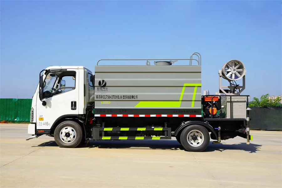 福田7方藍牌霧炮灑水車產(chǎn)品簡述:縱昂牌 CLT5043TDYBJ6 型多功能抑塵車標配前噴(鴨嘴)、后對 沖、后灑、側噴、后置式工作平臺,平臺上配置綠化水炮(可 360°旋轉,既可 以調成柱狀,也可以調成霧狀),配備優(yōu)質大功率專用灑水泵(可自吸自排, 可從河里或池塘抽水到罐體),取力器,雜物過濾網(wǎng),消防接口,自流球閥系統(tǒng)、 取力器、球閥、濾網(wǎng)均為國家標準產(chǎn)品,主管道加粗,法蘭墊、法蘭盤加厚, 大通徑球閥。整體具備性能優(yōu)良安全可靠、效率高、流量大、維修方便等特點。