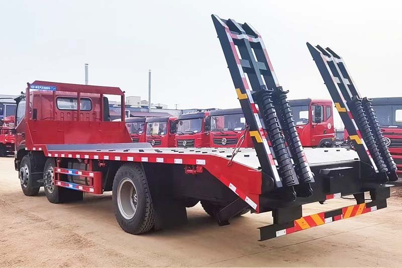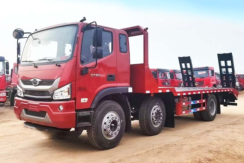 福田前四后四平板拖車,國六排放標(biāo)準(zhǔn),采用新款瑞沃ES5駕駛室,標(biāo)配中控鎖電動門窗、原廠空調(diào)、氣囊座椅、定速巡航、ABS等,可定制液壓雙節(jié)折疊爬梯,爬梯長度4米以上,運輸叉車等機械設(shè)備