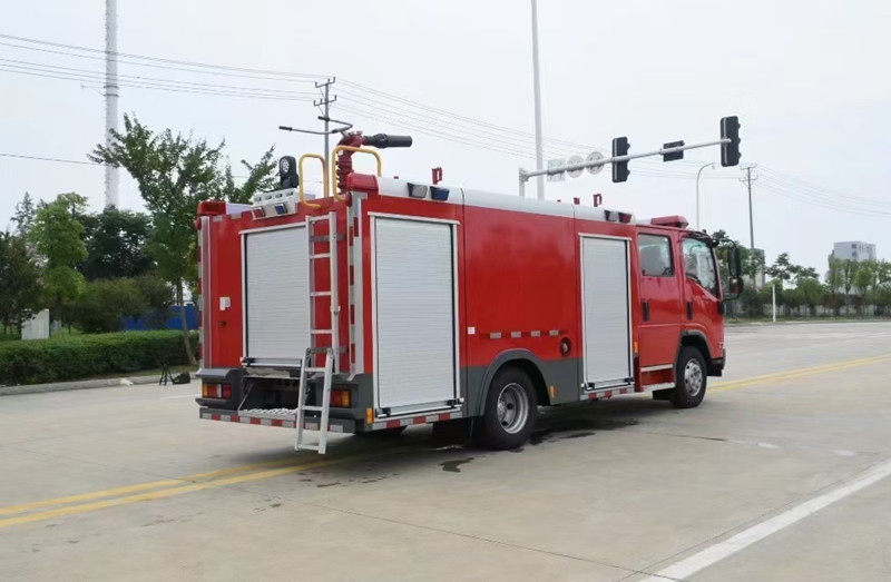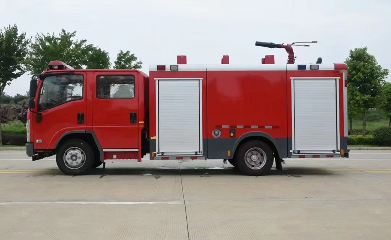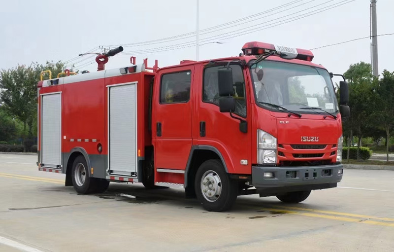 重慶五十鈴2-3噸消防車慶鈴QL1070A6HWY底盤改裝,平頭雙排駕駛室,液壓翻轉,五十鈴4KH1CN5LS發動機,98馬力,國五排放,罐體容積2-3立方米;整車結構緊湊,方便靈活,動力性能好,車速高,能自由進出鄉村狹窄道路及小區,具有大型消防車的全套消防功能,上裝箱體的上裝骨架全部采用引進歐洲技術生產的鋁合金型材制造,整車的重量減少,機動性能和整車載重量提高。除了裝備消防水泵及器材以外,還設有較大容量的貯水罐及水槍、水炮等。可將水和消防人員輸送至火場獨立進行撲救火災。也可以從水源吸水直接進行撲救,或向其他消防車和滅火噴射裝置供水。在缺水地區也可作供水、輸水用車,主要適用于大中城鎮、鄉村狹窄街道、城市小區、繁忙的批發市場等場所的一般物質滅火,閑暇時可用于園林噴灌、道路清灑。
