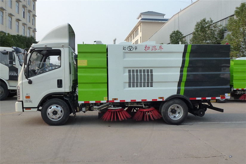 7、左右立掃為單掃盤,前掃盤帶自動避讓功能,減少了掃刷的數量和掃刷消耗量,能降低使用成本。掃刷上加裝噴水裝置,用于噴霧降塵。左右立掃分開控制,可實現后掃和全掃等不同的作業模式。