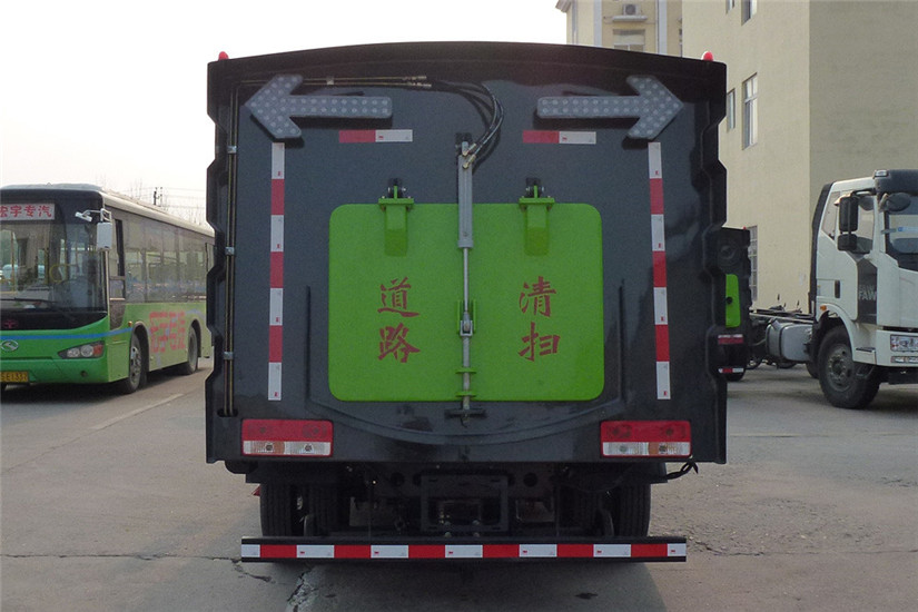 1.5立方水箱、4立方不銹鋼垃圾箱;中置4掃盤、后置吸盤、三洋馬達、江鈴五十鈴副發動機、施耐德控制開關、海普瑞思電磁閥組、無極變速自動離合器、免維護離心式風機、不銹鋼垃圾箱、北極星電子水泵、垃圾箱舉升自卸、尾部LED箭頭燈、手動泵應急系統?蛇x裝前沖后灑、垃圾箱自潔功能、倒車影像作業監控、前置雪鏟、掃雪滾。