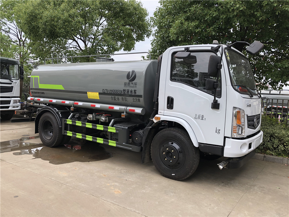 東風華神T1灑水車專用功能配置:罐體實際容積約為9.35立方米,采用武鋼優質碳鋼板卷壓成型。配備專用灑水泵,自吸自排,前噴后灑、側噴、后工作平臺及灑水高壓炮。灑水泵自吸高度為6米左右,整車灑水寬度14米左右,后工作平臺水炮可調成:直沖狀、大雨、中雨、小雨、毛毛雨,有效射程≥28米,整車帶接頭、水位計,自流閥。后工作平臺主管道有一個一寸的澆花接口,附送2根3米水管,1個爬梯,兩側及后保險杠。