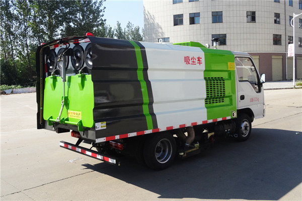 該吸塵車是采用江淮型國五二類原廠汽車底盤改裝,加裝副發動機、風機、清水箱、垃圾箱、中置吸盤,工作視頻探頭,自動脈沖清理功能,液壓系統、專用裝置電控系統和副車架等改裝而成。