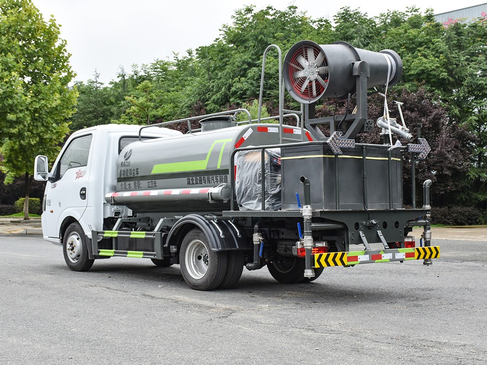 東風(fēng)途逸 2.5 方抑塵車主要技術(shù)參數(shù) 序號 名稱 型號、規(guī)格 1 整車型號 CLT5040TDYEQ6 型多功能抑塵車 2 發(fā)動機型號 Q23-95E60 3 發(fā)動機馬力/功率 全柴 95 馬力/70KW 4 發(fā)動機排量 2300ML 5 變速箱 萬里揚 5 檔 6 輪胎規(guī)格 185 真空胎 7 軸距 2800 8 總質(zhì)量 4495KG 9 整備質(zhì)量 2880KG 10 額定載質(zhì)量 1485KG 11 整車尺寸(長×寬×高) 5.8*1.85*2.6 12 罐體容積 2.5 方 13 燃料種類 柴油 14 排放標準 國六 15 水泵型號 40/50 16 罐體材質(zhì) Q235 碳鋼四. 產(chǎn)品功能展示 霧炮 后灑 后對沖 高炮 側(cè)噴
