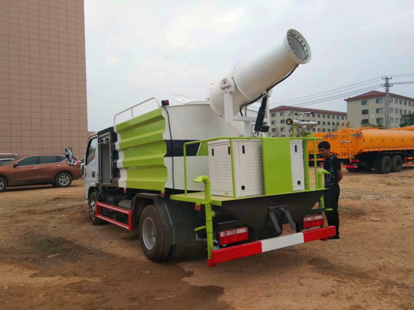 抑塵車吸程≧7米,灑水寬度≧14-16米,射程≧25-40米,引水時間<5min,流量60m3/h。前沖(噴)、后灑、帶側噴(花灑)、帶后工作平臺、平臺上安裝綠化灑水高炮(炮噴射形狀可調節:直沖、大雨、中雨、毛毛雨、霧狀、可連續調節,360°旋轉),配消防接口,自流閥,濾網,帶自吸自排功能。配備大功率專用灑水泵,泵可自吸自排,安裝過濾網,帶消防接口,可通過消防栓進水,帶自流閥,此車尾部加裝大功率農藥噴灑炮,噴灑狀態霧狀,有效射程15-45米,外部平臺帶獨立的機組。