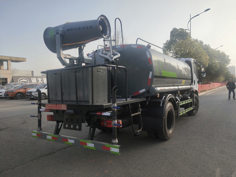 專用部分:帶前沖、后灑、側噴、后工作平臺、尾部帶綠化炮,帶自吸自排灑水泵,后工作平臺高壓水炮直沖射程25-30米(可調成:直沖狀、大雨、中雨、小雨、毛毛雨),整車帶消防接頭、自流閥。附送2根水管。加裝30型霧炮,霧炮可以遙控操作。