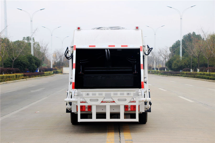 上裝效壓縮容積3-4立方,可裝3噸生活垃圾,壓縮倍率5:3倍,壓縮后生活垃圾密度從0.36變為0.96以上,帶污水收集箱,新款平板式箱體更美觀,尾部帶密封橡膠圈,可防污水滴漏二次污染。尾部可帶翻轉斗或掛桶裝置,可選裝駕駛室和尾部雙操控系統。