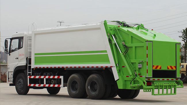 壓縮垃圾車采用機電液一體化技術,借助機、電、液聯合自動系統,通過車廂、填裝器和推鏟等專用裝置,實現垃圾倒入、壓碎或壓扁、強力裝填,把垃圾擠入車廂并壓實和推卸。其主要特點是垃圾收集方式簡便、高效、具有自動反復壓縮以及蠕動壓縮功能,壓縮比高,裝載質量大,作業自動化,動力性、環保性好,整車利用效率高。